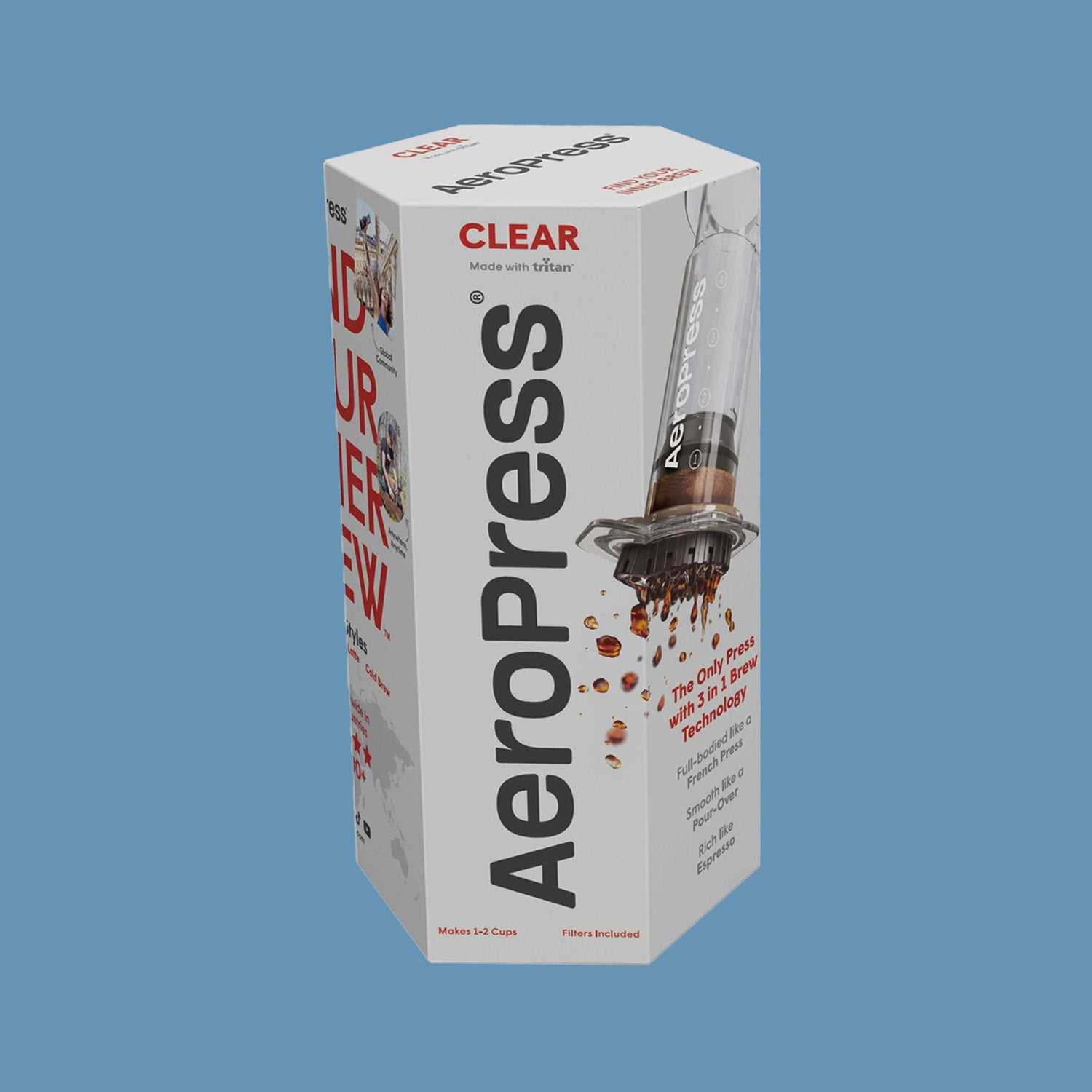 The AeroPress Clear brings the same iconic, patented brew technology you love—now in durable, shatterproof Tritan™. Lightweight and portable, it’s the perfect coffee companion to bring with you on your next trip.